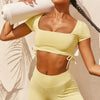 Yoga Gym Suit Fitness Sports Clothing For Women Short Sleeve Crop Top Lace Up Leggings Sports Shorts Suit Jogging Slim Outfits