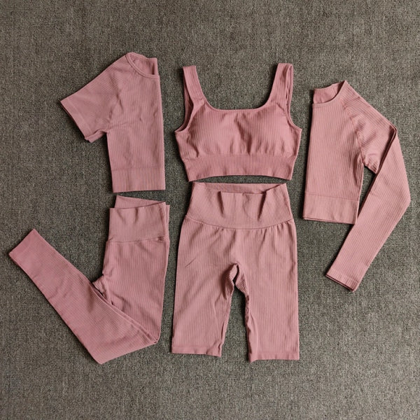 Yoga Set Seamless Women's Sportswear Workout Clothes Athletic Wear Gym Legging Fitness Bra Crop Top Long Sleeve Sports Suits