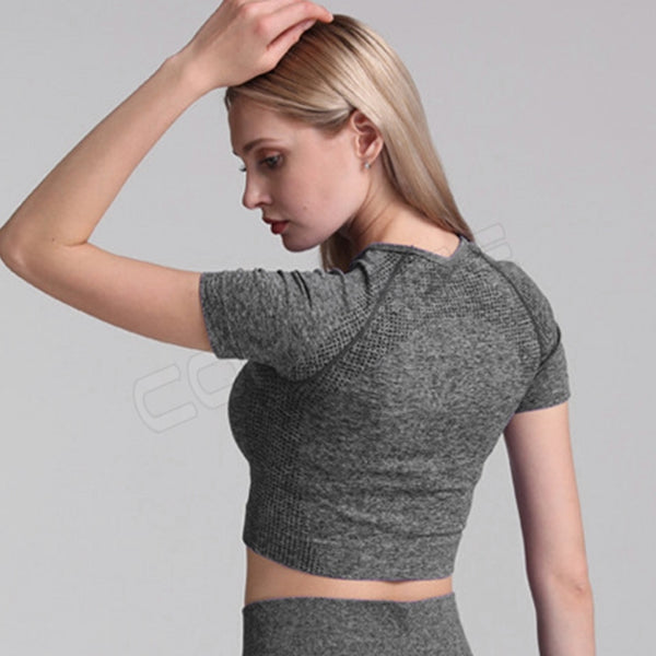 Yoga Sets Short Crop Tops Sport Pants Workout Shirts Gym Clothing Leggings Running Suits Fitness Outfits 2 Piece Sportswear