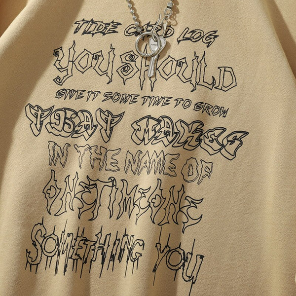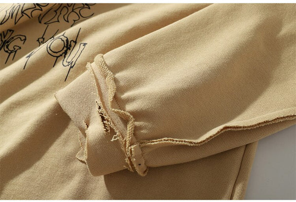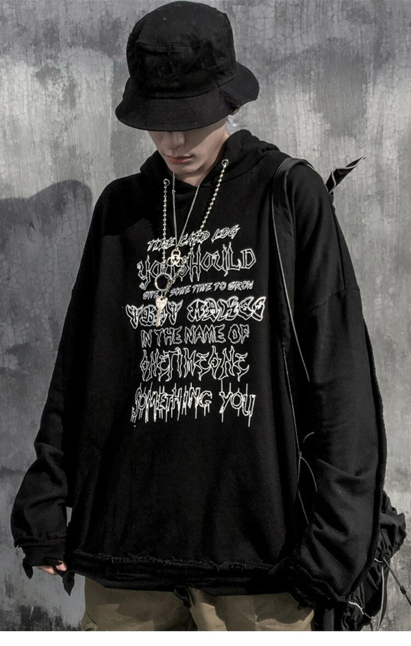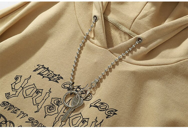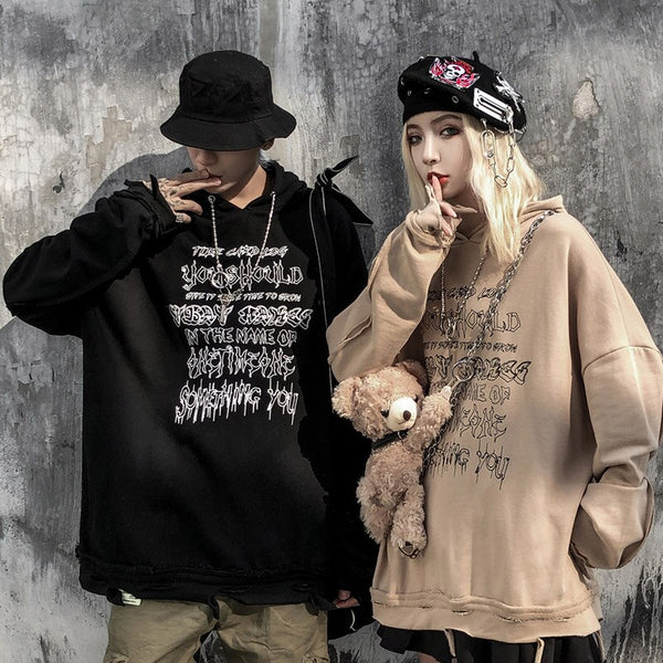 Hoodie Men Fashion Chain Punk Letter Printed Hole Ripped Hipster Cozy Baggy All-match Hooded Pullover Couple Streetwear