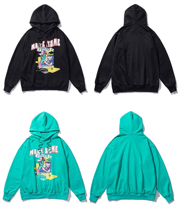 Hoodie Men Funny Girl Comics Anime Letter Print Hooded Pullover Autumn Cozy Japanese Hip Hop Harajuku Couple Streetwear