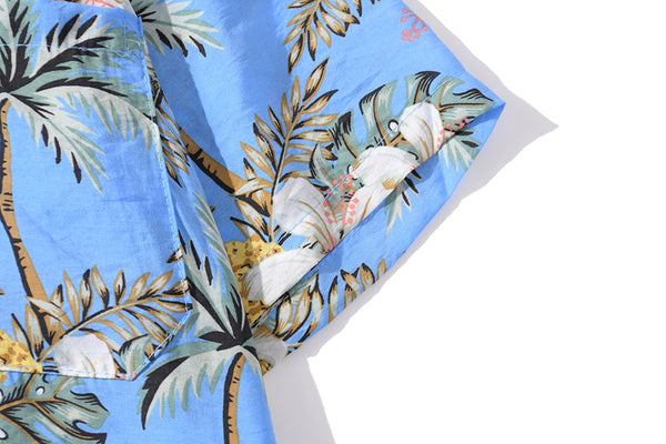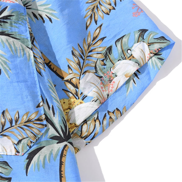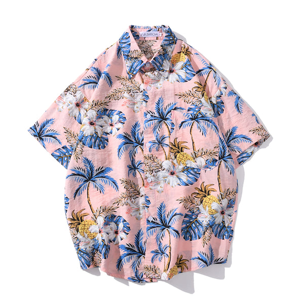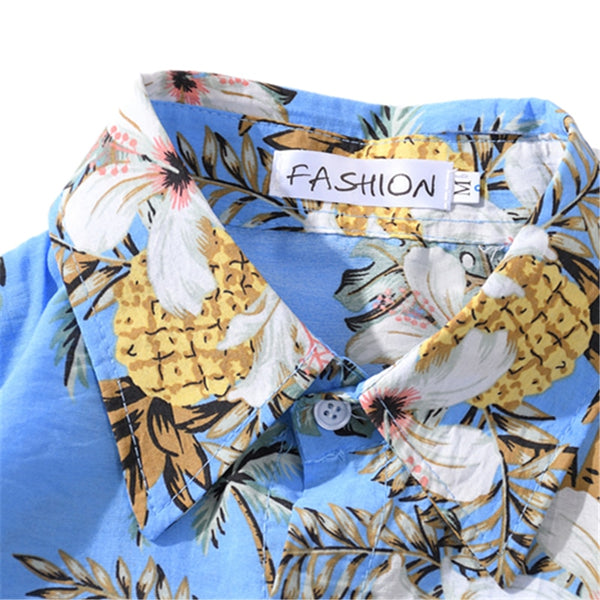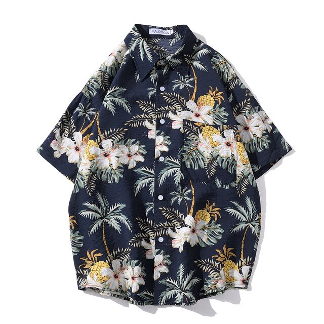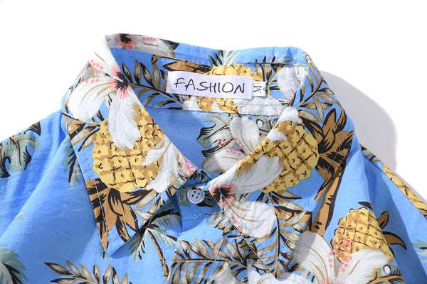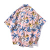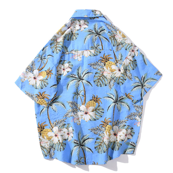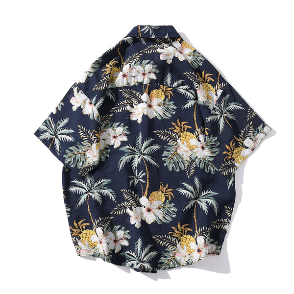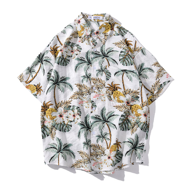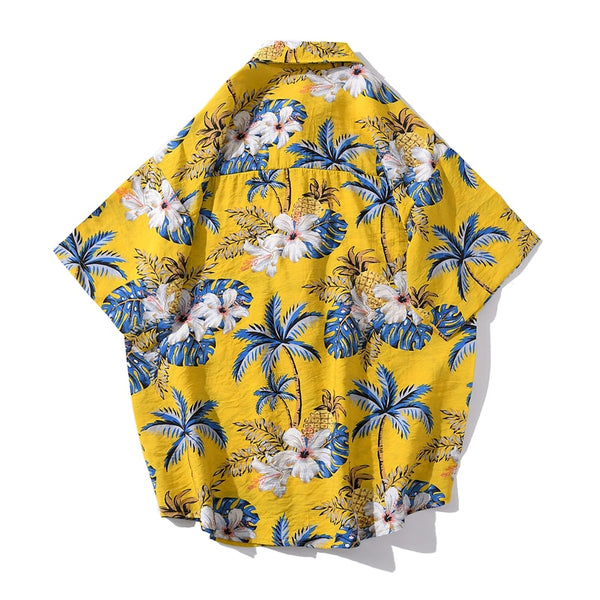 Full Pineapple Coconut Tree Print Yellow Shirt Casual Mens Short Sleeve Fashion Holiday Hawaiian Shirts