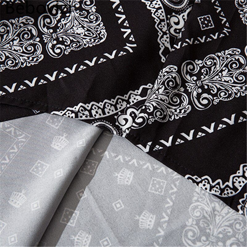 Cashew Flowers Print Shirt Mens Casual Loose Hip Hop Black Tops Long Sleeve Hawaiian Shirt Camisas Korean
