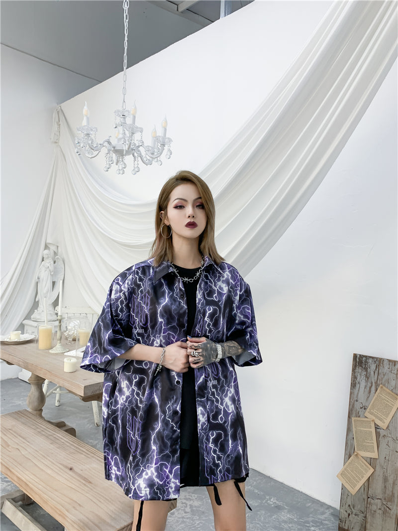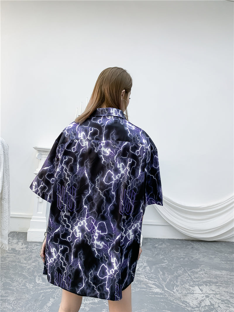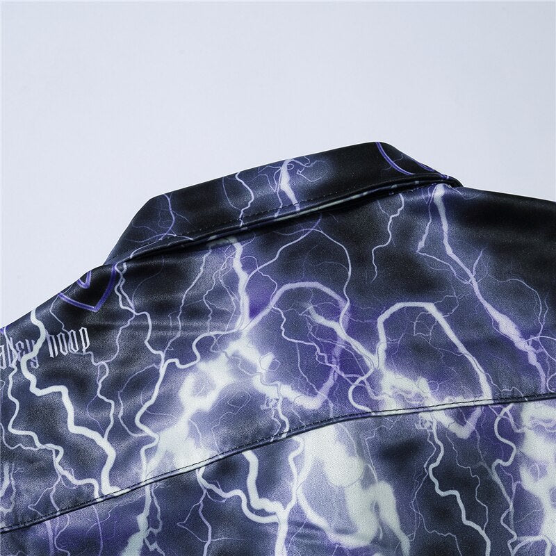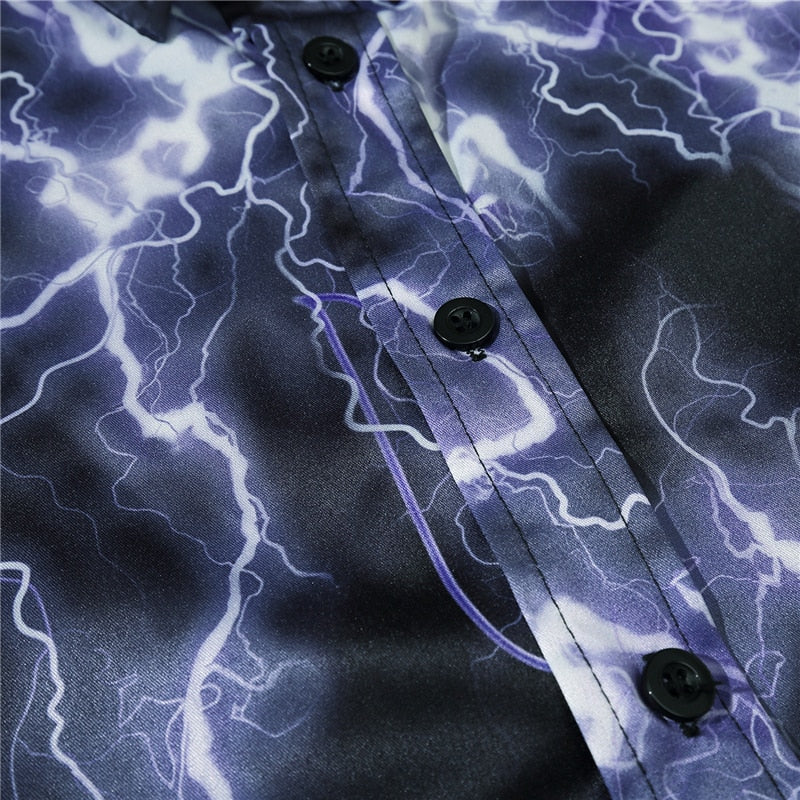 Full Lightning Print Short Sleeve Hawaiian Shirt Summer Casual Floral Button Tropical Beach Hawaii Camp Oversized Shirt