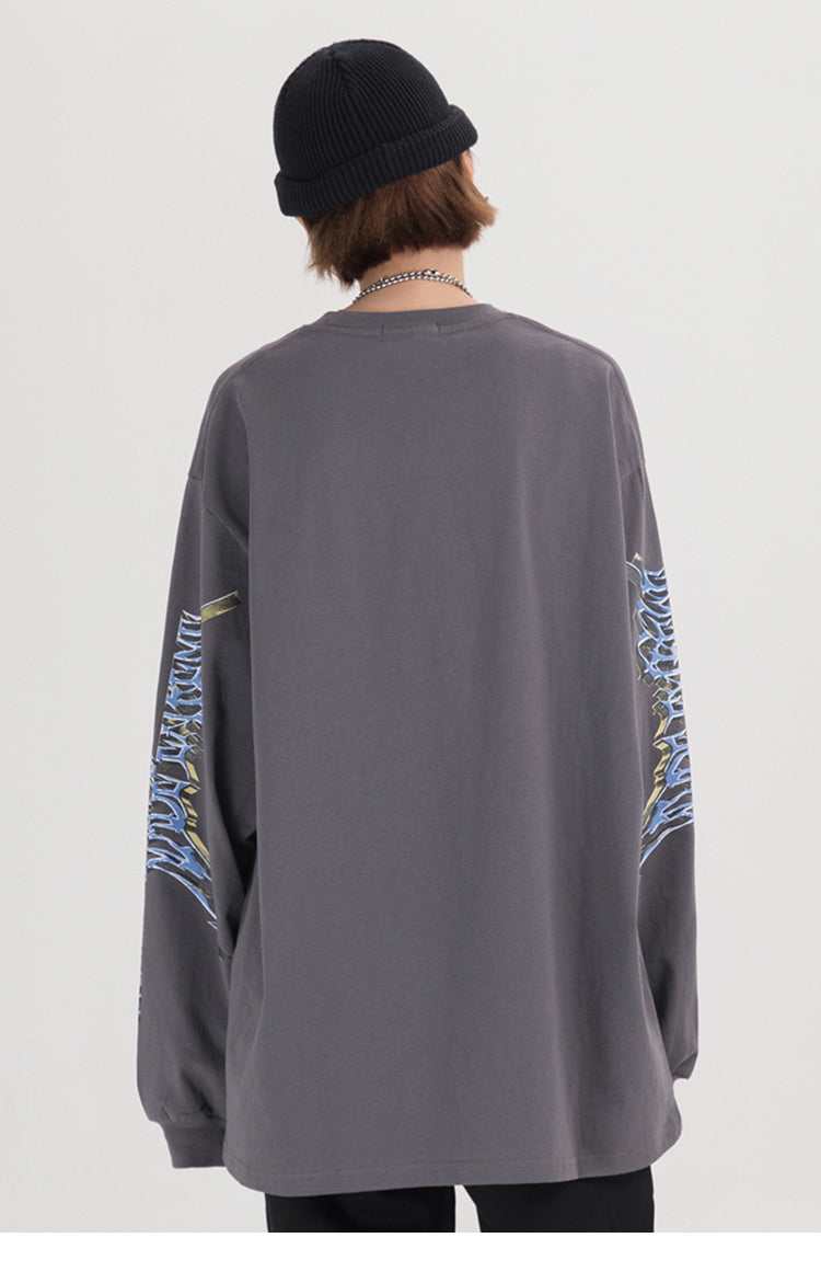 Men Hip Hop T Shirt Streetwear Retro Angel Print Harajuku Tshirt Loose HipHop T-shirt Oversize Cotton Tops Tees Long Sleeve