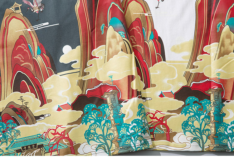 Streetwear T Shirt Men Hip Hop Chinese Colorful Fairyland Tshirt Short Sleeve Cotton Summer T-Shirt Fashion Tops Tees Print