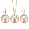 Dubai Gold Jewelry Sets for Women Accessories Tree of Life Charm Earrings Necklace Set with Pink Crystal from Swarovski