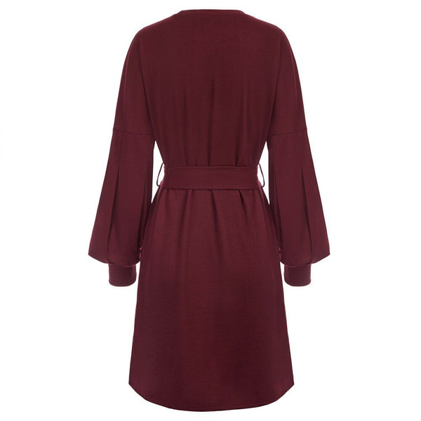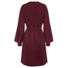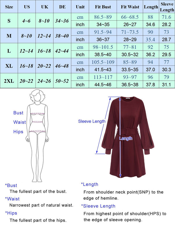 Grace Karin Summer Mini Dresses Women Belt Sashes Dress Long Lantern Sleeves Crew Neck Solid Color Retro Ladies A-Line Dress 7149458194600