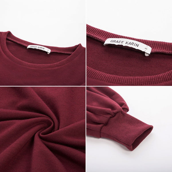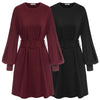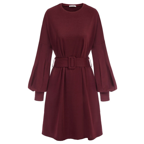 Grace Karin Summer Mini Dresses Women Belt Sashes Dress Long Lantern Sleeves Crew Neck Solid Color Retro Ladies A-Line Dress