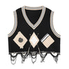 Graphic Applique Chic Casual Women Waistcoat,Autumn Chic Sleeveless Korean Office Ladies Daily Knitted Jackets