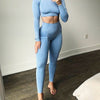 2 Piece Outfits: Long Sleeve Crop Top Pants Set