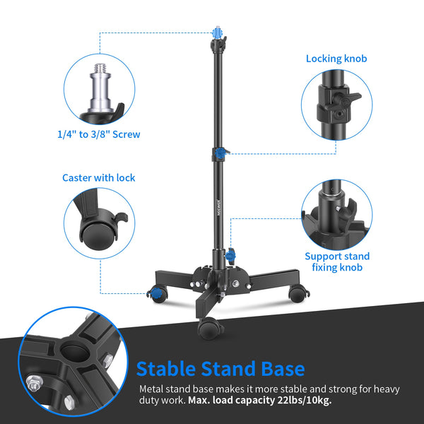 Heavy Duty Light Stand with Caster,0.72m Tripod Stand, Photography Wheeled Base Stand for Photo Sutido Softbox, Monolight