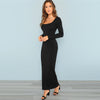 Maxi Square Neck Fitted Maxi Dress Bodycon Long Sleeve Stretchy Plain Dresses Women Autumn Tshirt Slim Elegant Dress