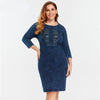 New Fashion Plus Size Denim Dress Solid Tassel Sequined Glitter Stitching Seven-minute Sleeved Dress For Female