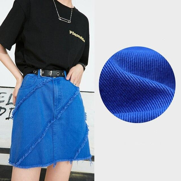 Solid Pure Raw Hem High Waist Casual Women Mini Skirts,Spring Vintage,Sexy Ladies Daily Chic Denim Bottom
