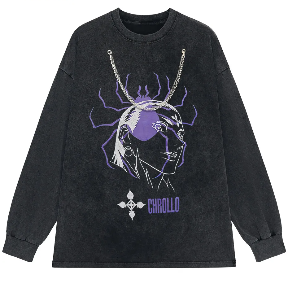 Vintage Washed Hunter x Hunter Chrollo Phantom Troupe Anime T-Shirt Men Harajuku Tee