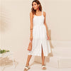 White Embroidered Eyelet Hem Button Up Summer Boho Dress Women Straps Empire Dress Solid Fit and Flare Long Cami Dresses