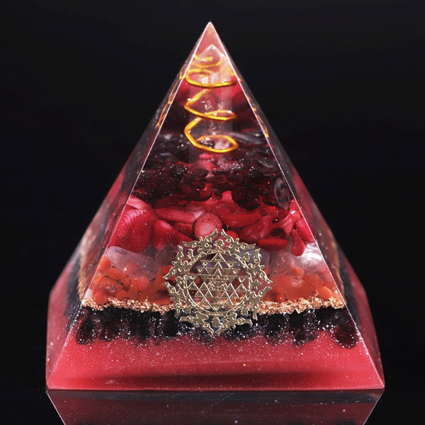 White Crystal Pillar Orgonite Pyramid With Garnet Red Coral Reiki Chakra Energy Orgone Pyramid Collection Emf Protection
