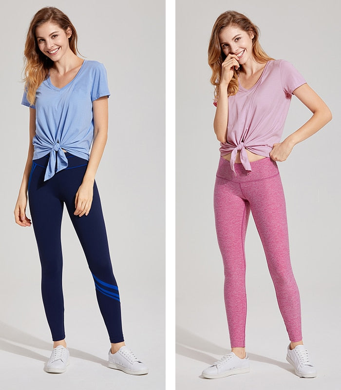 Women's Pima Cotton Workout Short Sleeve V-Neck Tie T Shirt Tops