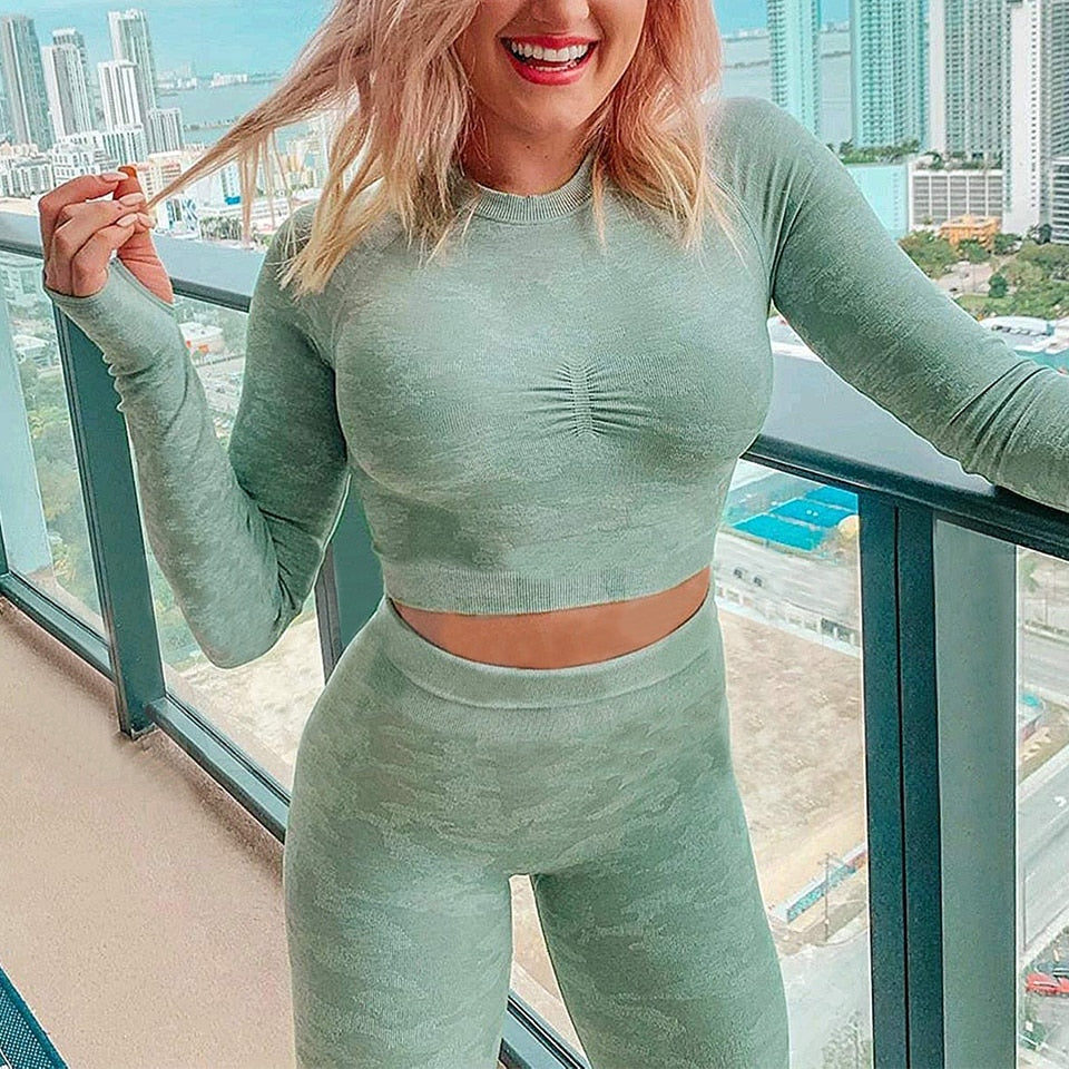 Yoga Tops Workout Clothes Long Sleeve Fitness Crop Top Gym Sportswear Seamless Running Shirts Sport T-shirt Athletic Cropped