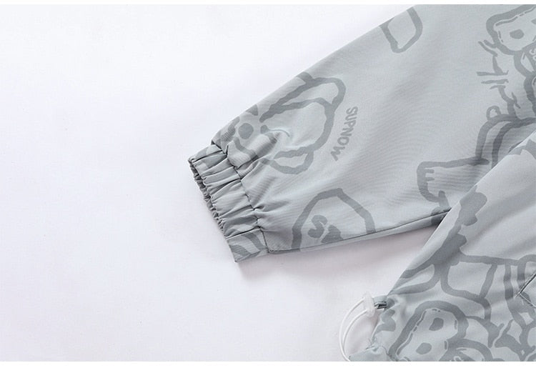Funny Cute Cartoon Print Hooded Jacket Men Zipper Loose Harajuku High Street Fashion Windbreaker Coat Couple Streetwear