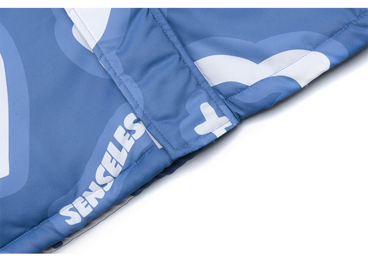Hooded Winter Jacket Men Cartoon Graphic Print Cotton Zipper Coat Couple Harajuku Fashion Oversized Windbreaker Outwear