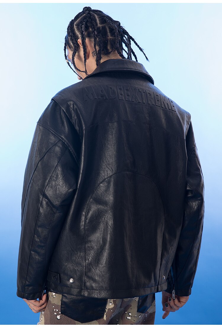 Thick Leather Parkas Men Letter Zipper Pockets Motorcycle Jacket Winter Men Loose Fashion Punk All-match Outwear Unisex