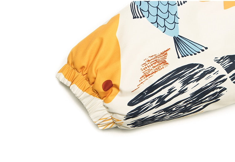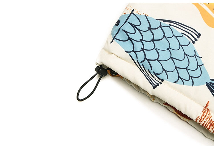 Winter Jacket Men Colorful Cartoon Fish Print Hooded Coat Zipper Casual High Street Harajuku Windbreaker Couple Outwear