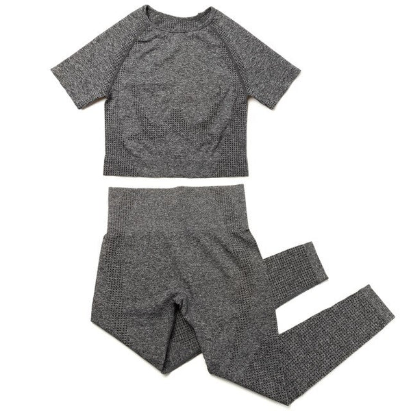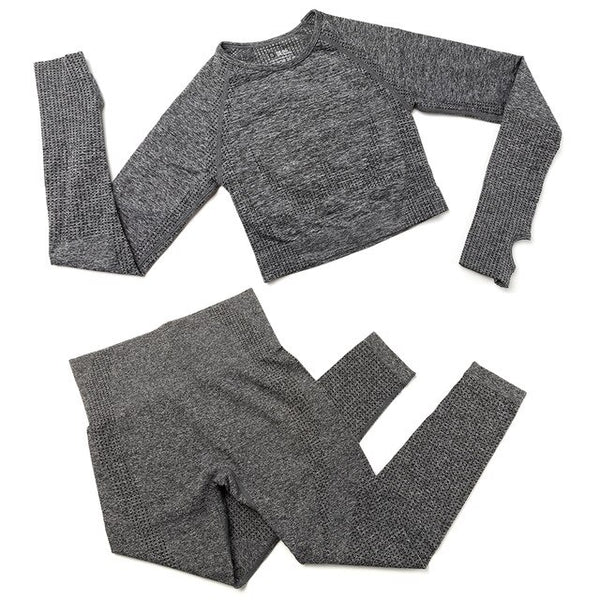 Yoga Set Women 2pcs Sport Suit Gymwear Workout Outfits Long Sleeve Fitness Crop Top High Waist Seamless Leggings Sportswear
