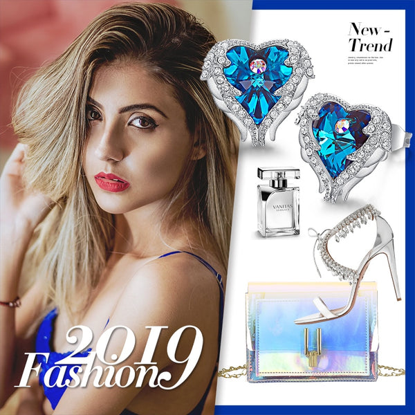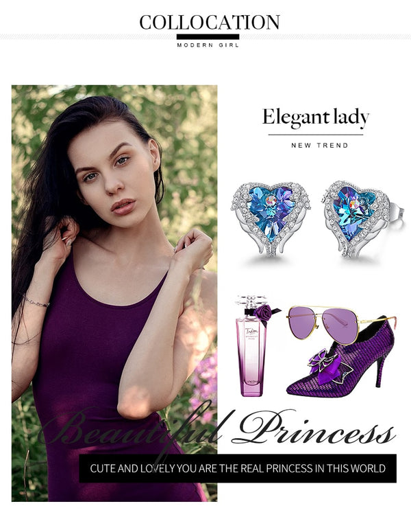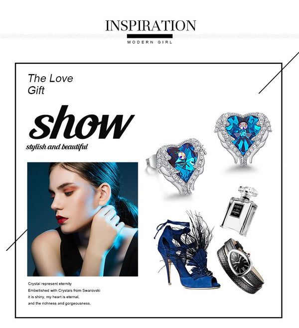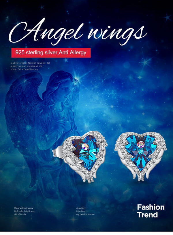 Angel Wing Stud Earrings Embellished with Crystal from Swarovski Earrings for Women 925 Sterling Silver Fine Jewelry