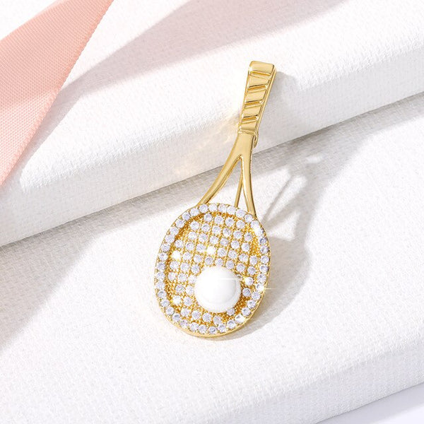 Hijab Pins Sport Brooch Zircon Tennis racket Brooch With Big Pearl brooches Sport Epingle Hijab Pin Jewelry Gifts For Women 5789862428840