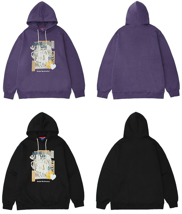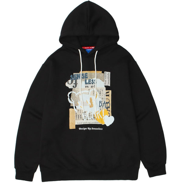 Hoodie Men Kanji Letter Picture Patchwork Hooded Pullover Couple High Street College Style Sweatshirt Autumn Streetwear