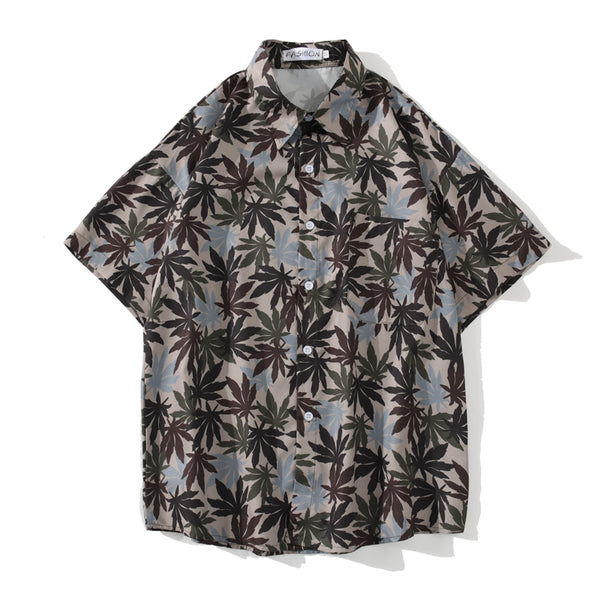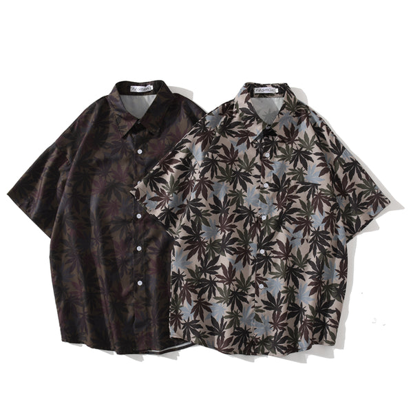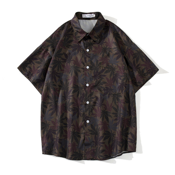 Hip Hop Shirts Men Women Leaves Print Hawaiian Trend Casual Streetwear Shirt Harajuku Short Sleeve Tops 5632595427496