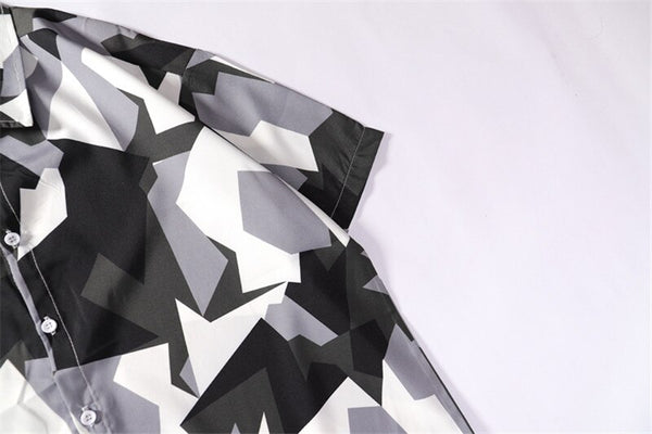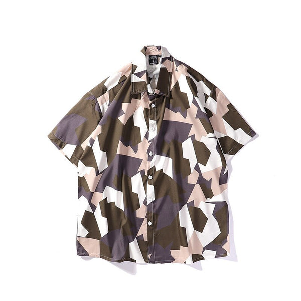 Mens Streetwear Geometry Short Sleeve Shirts Harajuku Hawaiian Pink Grey Shirt Hip Hop Casual Loose Shirt