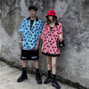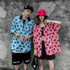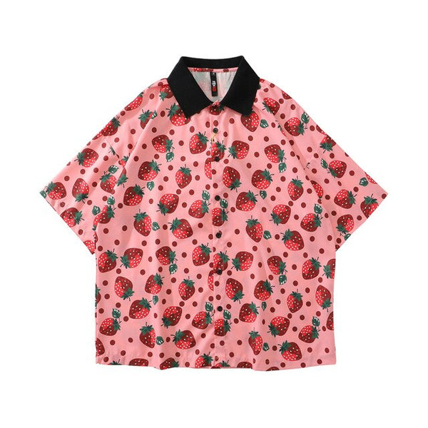 Strawberry Print Harajuku Shirt Mens Hip Hop Streetwear Hawaiian Shirt Fashion Oversized Short Sleeve Korean Red Tops
