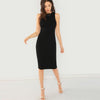 Black Elegant Solid Pencil Dress Slim Sleeveless Knee Length Sexy Workwear Dresses Women Plain Sheath Summer Dress
