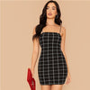 Black Grid Print Bodycon Slip Dress Women Summer Autumn Slim Fit Spaghetti Strap Sexy Night Out Plaid Pencil Mini Dresses 5537629208744