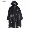 Hip Hop Hole Hooded Long Trench Jackets Coats Men Raw Edge Cloak Male Capes Gothic Punk Steampunk Overcoat Print Denim Full GUYI