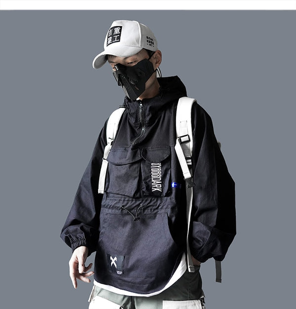 Hip Hop Men Cargo Jackes Letter Printed Autumn Casual Pullover Streetwear Harajuku Multi Pockets Male Coats