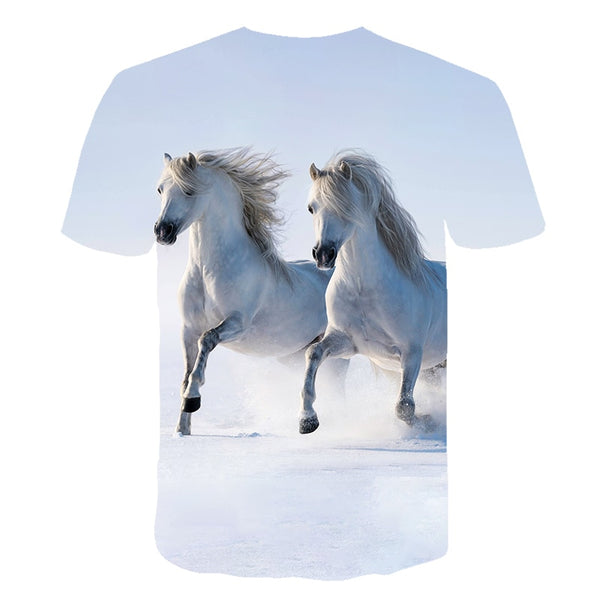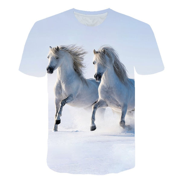 Men Streetwear Round Neck Short Sleeve Tees Tops Funny Animal Male Clothes Casual Run Horse 3D Print Tshirt