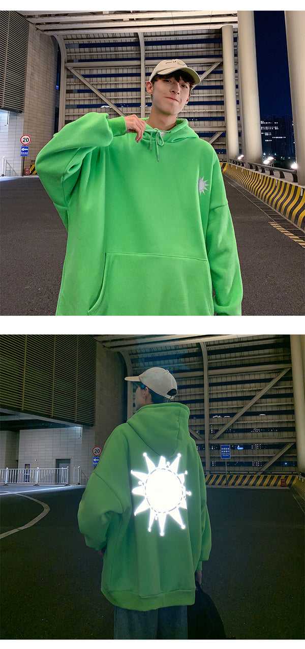 Moon Reflective print Hoodies Men's Sweatshirt Orange Autumn Winter Sweatshirts Men Streetwear Cool korean Loose Hoodies Male