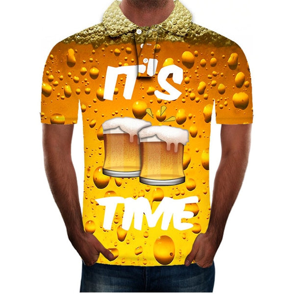 polo shirt men beer 3D Print Short Sleeves Polo Shirt New Summer Slim Casual Polo Shirt Men Clothing polo homme