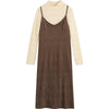 Solid Pure Contrast lace Casual Dress Women Fake 2 Pieces Sets,Spring Full Sleeve Korean Ladies Velvet Party Dress
