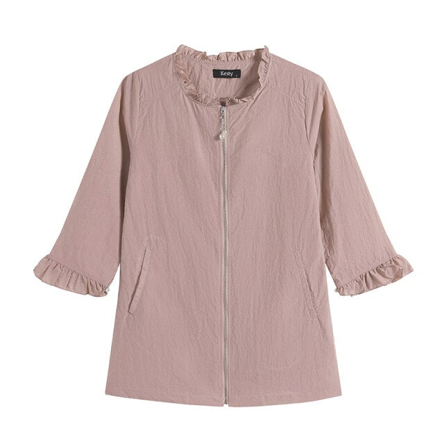 Women's Plus Size Windbreaker Mid-Length Round Neck Jacket Spring And Autumn Loose Zipper Windbreaker 7134985257128