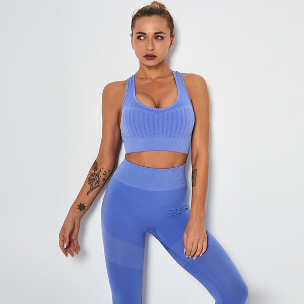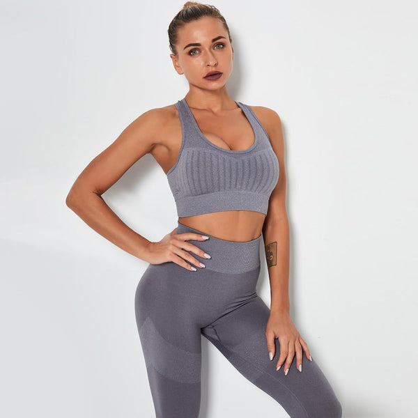 Seamless Yoga Fitness Tracksuit Set For Women Vest Crop Top Leggings Pants Suit Gym Jogging Slim Sportswear Outfits Dry Quickly