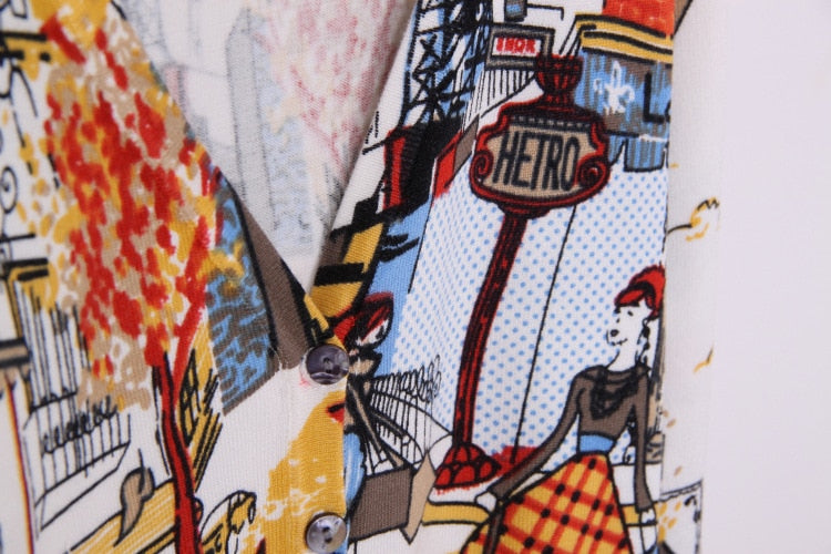 Spring Autumn Drawing Print Lady Long-Sleeve Sweater Cardigans Women V-Neck Casual Knitted Outerwear High Quality