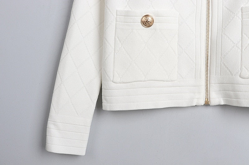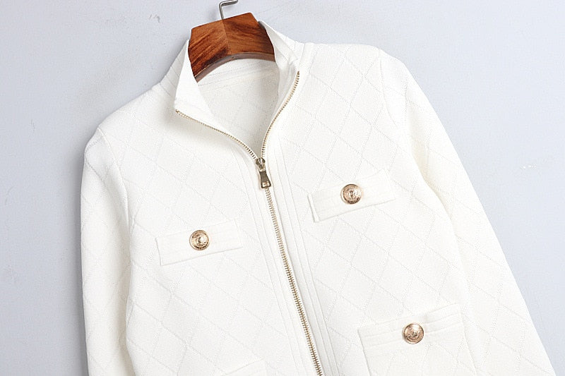 Spring Fall Zipper Knit Cardigan All-Match Black&White Long Sleeve Temperament Women Slim Sweater Outwear Harajuku