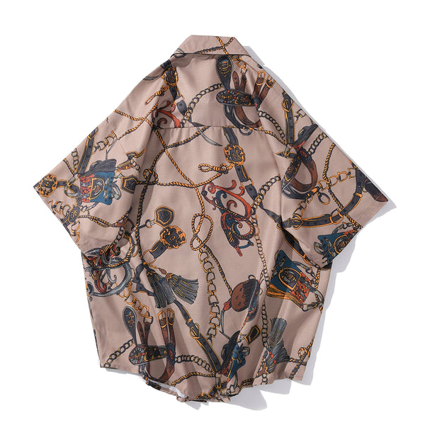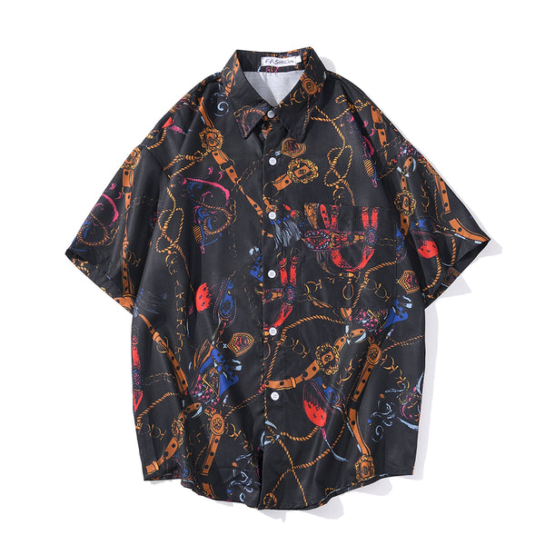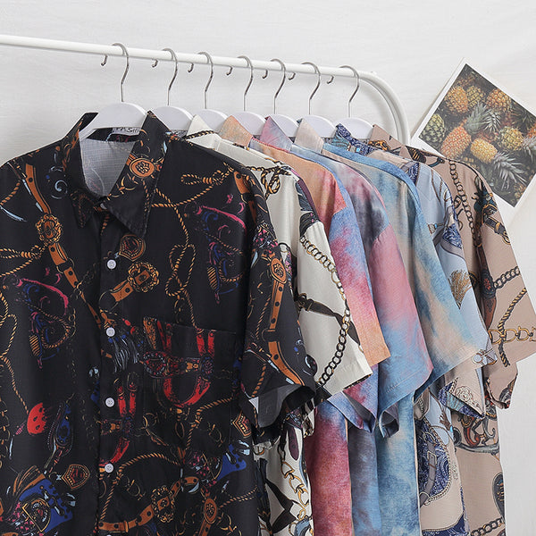 Fashion Brand Graphics Print Hawaiian Shirt Casual Vacation Beach Shirts Summer Hip Hop Short Sleeve Male Tops Tees