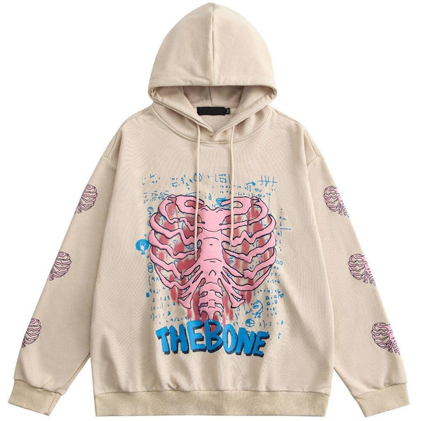 Hoodie Men Body Skeleton Letter Graffiti Hooded Pullover Autumn Baggy Hipster Hip Hop Style Sweatshirts Male Streetwear