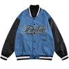 Jacket Men Denim Leather Patchwork Color Letter Embroidery Baggy Fashion High Street Style Baseball Jacket Autumn Coats